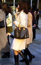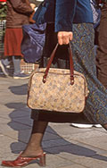 “お嬢持ち”とは、持ち手を腕に通して持つスタイルのこと。色やデザインは問わない。