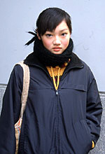 今日は友達のプレゼントを買いに新宿に来ました。プレゼントは財布にしようと思っています。どこで買うかは決めていませんがこれから伊勢丹に行こうと思っています。今日始めて代々木公園のフリーマーケットに行ってきたんですよ。タートルネックの赤いセーター(500円)と緑のコーデュロイリメイクスカート(2000円)、紫の長袖シャツ(600円)を買いました。買い物は原宿が多いですね。裏原を一通り歩いて気になった店に入ります。好きなブランドはヴィヴィアンウエストウッド。買えないけど憧れです。実際に買うのは古着が多いです。よく読む雑誌は『CUTIE』。このスニーカーは、勢いで買ってしまったんです。赤って結構使える色で、一足有ると便利です。受験生なので今はとにかく勉強を頑張っています。頑張りたくないけど、頑張らなきゃ…