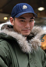今日はデートで散歩。ロサンゼルスのカレッジでグラフィックデザインを勉強して、春休みで日本に帰国中。彼女とは遠距離恋愛。楽で汚れてもいいカッコで、好きなブランドとかは別にありません。服にはお金かけてないです。雑誌はスケボーをやっているので『WARP』と、日本の現状を知るために『SAPIO』を読んでます。趣味というか、今、ラップのリリック(詩)を作っていて。日本語です。父が建築業なので、将来は親の仕事を継ぎたいと思っています。