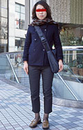 ダブルボタン・トップス。前ボタンがタテに2列連なっているもので、ボタンの数は4個以上。丈や色、柄、素材は問わない。