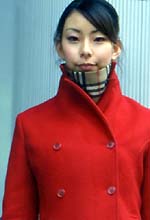 今日は買い物に来ました。無印良品で白いシャツを買って、これから伊勢丹やマルイザッカを見る予定。以前はモルガンが好きだったので新宿の丸井によく行ってたんですが最近は形と色がきれいな Cherが好きで原宿に行くことが多いですね。フリーズショップやアクアガールにもよく行きます。春になったら着ようと思ってアクアガールでストライプのまる衿シャツを買いました。最近ストライプって流行ってるじゃないですか。このコートは赤い色と丈の長さが気に入って買いました。憧れているブランドはエルメス。雑誌はあまり買わないですが『Ray』『spring』は立ち読みします。料理が好きで家でも和食を中心によく作ります。将来は料理人になってカフェ&バーみたいな店を持つのが夢です。
