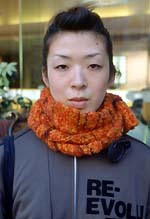 今日は買い物と散歩に来ました。原宿でオゾンを見て、渋谷までプラプラ歩き。タワーレコードでトライセラトップスのレコードがセールで半額になっていたのを発見して買っちゃいました。トライセラはロックだけどかわいさ(?)があるような気がして好き。これからライブにも行ってみたいです。よく行くのはオゾンとパルコパート1。ロックぽくってかっこいいので2〜3年前ぐらいからずっとオゾンが好きなんです。雑誌は『Zipper』と『mini』を見て、良かったら買ってます。髪型は3〜4年前からよくポンパドールをしているんですが、最近流行っているからやめようと思って。みんなと同じになるのって、あまり好きじゃないんです。最近みんな同じかわいくてきれいめの格好が多いですよね、ジャケットとか。だからポンパドールも、あごまである前髪をわざと思いっきりボリュームだして膨らませたりして、みんなと違う風にしてみたり。興味のあることは音楽!今はガールノーペインという日本人パンク系バンドに興味があってインターネットで調べたりしています。もともとこのバンドの前身、ヘイトハニーが好きで、ホントはまたその前のディープというバンドが大好きだったんですよ。ファッションの参考にもしていますね。ライブとかにもちょくちょく行ってますよ。バンドとか好きなんですけど、でも将来の夢は調律師になること。幼稚園の頃から今もずっとピアノを習っていて、今は専門学校に通いつつピアノの講師のバイトなんかもしています。ロックなピアノ調律師って、なんかカッコ良くありません!?