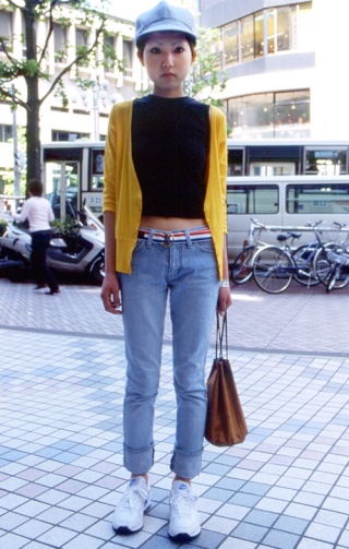 いわゆるベルトをしていることが見てわかる女性のすべて。すなわち、バックルのみが見えていたり、サイドにちらり とベルトが覗いている場合も含む。色や素材、幅、デザインなどは問わない
