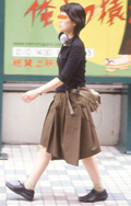 アースカラーのスカート、キュロット、パンツなど、ボトムスのアイテムとして着用する女性すべて。素材は問わない。