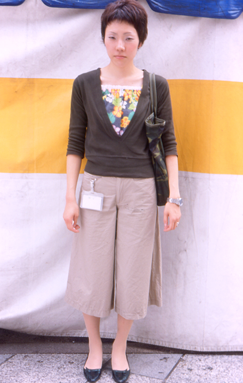 トップスかボトムスのいずれかが、ベージュ〜モスグリーン、カーキ色がベースとなっているアイテムを着用する女性のすべて。ワンピースも含む。帽子やバッグ、靴だけの場合は除く。素材は問わない。
