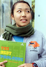 文化服装学院の文化祭を見に来ました。明日には仙台に帰ります。普段、東京にはあまり来ませんね。仙台にも文化服装学院はあるし、わざわざ東京に来ようとは思わなかったですね。東京は人が多すぎてコワイし(笑) 。この後は買い物にでも行こうかなぁと思ってますが、はっきり決めてません。よく行くのは仙台の古着屋。好きなブランドとか特にないので、古着などのわりと安いものばっかり買ってますね。このジップアップパーカーも、仙台のお店でパーカーを探している時に見つけたんです。左胸についている赤いトラックのイラストも気に入ったし、しかもお値段3000円! みたいな(笑)。もうこれで決めました。学校の授業などで自分でジャケットを作るようになってからは、他人の上着の“袖山(袖付けのカーブの部分)”をチェックすることにハマってます。サラリーマンの人とかとすれ違っても、その部分にしか目がいきません。かなわない夢かもしれないけど、将来は古着屋をやってみたい! 自分でつくったものも売りたいなぁ…。