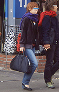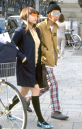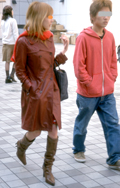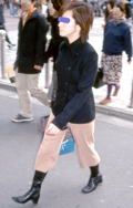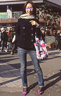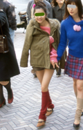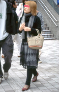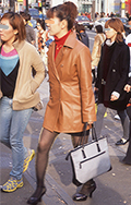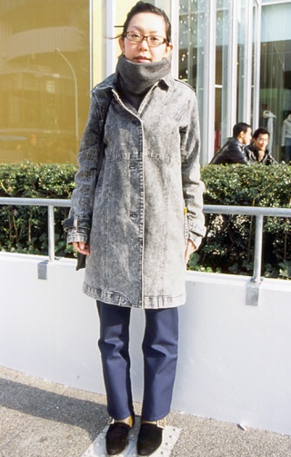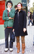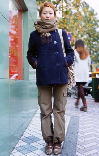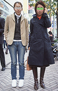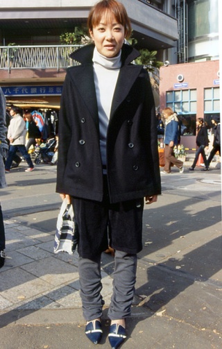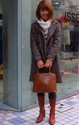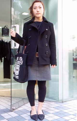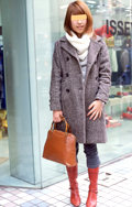 きっちりコートにミニスカート+ハイソックスというプレッピーな...