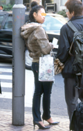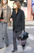 ゴージャスなファージャケットにタイトなパンツ+ピンヒールはB...
