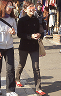 ブロンズ系ゴールドのぺたんこ靴も増加。裾しぼりパンツならぬ、...