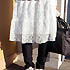 今日は春を先取りという感じで、白のレースっぽいスカートを合わせました。パンツが大きかったんですよね。スカートはもともとパンツと合わせようと思って買ったものです。スカートだけではあまり履かなくて、昔から重ね着とかしてますよ。