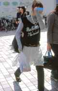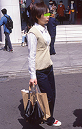 ワンピースも可。色や素材、柄の有無は問わない。その上にジャケットやパーカー、ジップアップブルゾンなど、前開きのアウターを重ねている場合も含む。