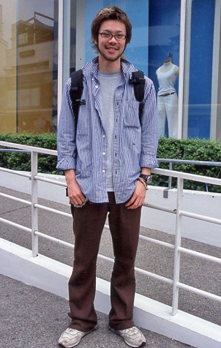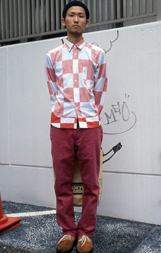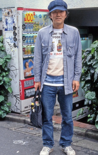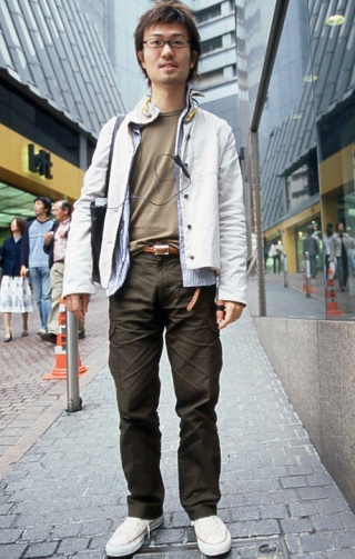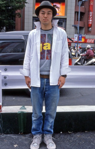 いちばん上に前あきシャツを着用しているスタイルすべて。前のボタンの開閉やシャツの色や柄、素材などは問わない。
