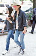 ダメージドデニムに花柄のシャツ、中折れ帽とフリンジベルトなど...