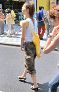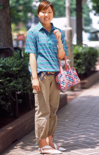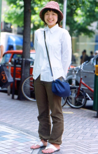 いちばん上にシャツを着用している女性すべて。シャツの定義は、衿があり、前後の身頃と前立て、袖で構成されてトップスで、前はボタンで全開するもの。ただし、色や柄、素材、袖の長さ、丈は問わない。