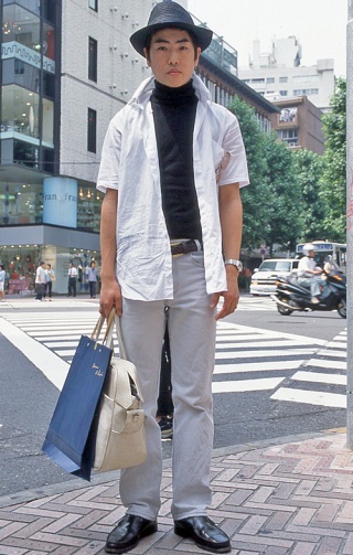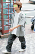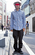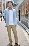 シャツの着こなしが、下に着たアイテムが見えるように重ね着スタイルのもの。色や素材、柄の有無、袖丈などは問わない。
