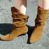 ■ミドル丈ブーツは膝上丈ボトムと好相性。ストリート系の女の子を中心にカジュアルなスウェードブーツも支持されている。