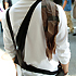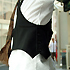 ■タキシードベストを斜めに着てアシンメトリーな形を形成。トーキョーモード系は既製服をアレンジしてオリジナルのデザイントップスに仕上げている。
