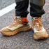 この靴は大学の入学祝いで買ってもらいました。持っている靴に白黒が多かったので、暖色系の色を選びました。形も気に入っていて、先端が大きいカートゥーン的な表現が好きなので、ボリュームのある靴を合わせることでシルエットが自分好みになります。