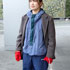 全体に色がなかったので、差し色にしたいと思って赤の手ぶくろを付けました。昨年のクリスマスにプレゼントでもらいました。