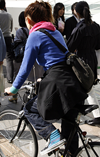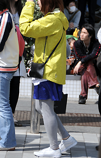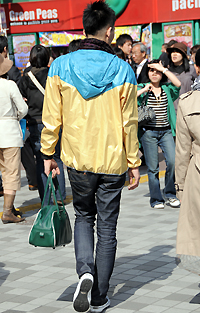 先月まで多かった黒ジャケットに代わりカラフルなアウターが浮上...