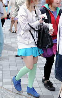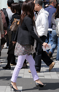 これまでダークカラーとの組み合わせが多かったカラータイツだが...