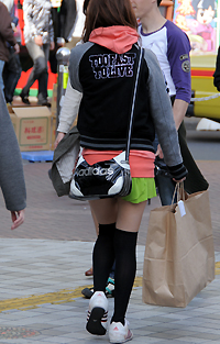原宿ではカラーアイテムを黒で引き締めたスタイルが多かった。今...