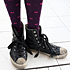 タイツは西武で買ったものです。色合わせが半分ダサくて、ギリギリアウトな感じで気に入ってます。最近はタイツをよくはきますね。まっ金色とか柄ものとか、気持ち悪い色味のタイツも持っています。派手なタイツは、シンプルな服と合わせています。寒くなくて天気がいい時は柄タイツをはきます。