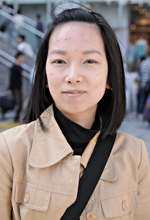 値段が高いものは基本的に買いません。淡い紫色がもともと好きで、ワゴンセールの中で見つけました。友達から、「変わった色を使うね。」と言われますが、自分では意識していません。今日は黒よりも、レモン色の靴を取り入れることによって、アクセントになると思いました。色を組み合わせることが好きなんですが、組み合わせは、自然に思いつきます。小さい頃から、選ぶ色・好きな色が周りの友達と違ったかも。紫のスカートを買った時は、明るい気持ちだったのかもしれません。