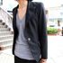 このジャケットはサイズ感、細身で丈もちょうどよかったので買いました。基本的にジャケットは黒しか着ません。3着くらい持っていたけど、売ってしまったので、今日着ているもののみです。タイトなシルエットが今の気分。