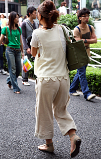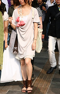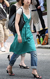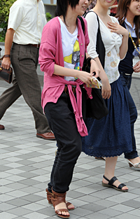 ストラップが付いている靴のすべて。バックストラップのサンダルやトング、ビーチサンダルも含む。履いているソックスのデザインがストラップのように見えるものも含む。色や柄、素材は問わない。