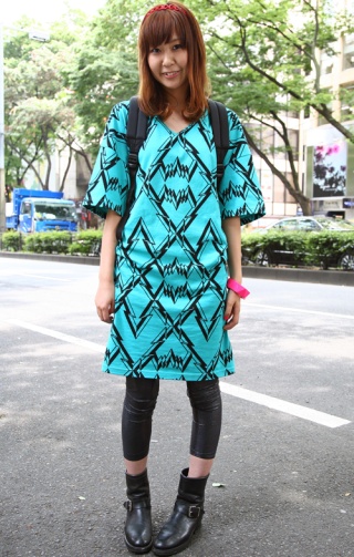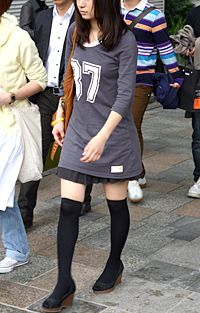 ロングTシャツをミニワンピース風に着こなしたスタイル。実はボ...