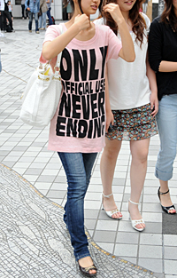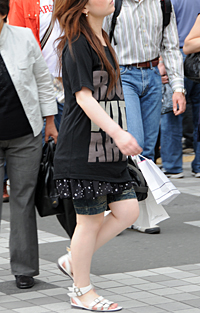 ヒップにプリントが入ったTシャツも目立つ。ギャルを中心にミュ...