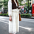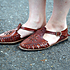 以前茶色のスリッポンを持っていたけれど、壊れてしまったので似た感じの靴を探して買いました。身長が高いのでヒールのあるものは履きません。普段、黒やベージュ、白などのふんわりした服が多いので、そういった服に合わせやすい茶色のサンダルを選びました。ガーリーなイメージでコーディネートしています。