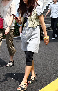 パンツではなく、ニット素材やカットソー素材によるスパッツ。色やデザインは問わない。