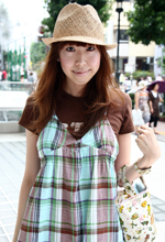 シンプルなTシャツのワンポイントにと思って買いました。帽子好きで、ニット帽やハンチングなどをよくかぶります。夏なので、梨花っぽくストローハットにチャレンジしてみました。