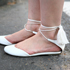 最近白のバッグを買ったので、それに合う白い靴を探していたところ、この靴を見つけました。先が丸いところがかわいくて試着したらサイズが大きくて脱げてしまうので一旦は諦めたんですが、どうしても欲しくなって買いに戻ったんです。全体のバランスやヒモのストラップ、涼しげなところも気に入っています。今日は女の子っぽいコーディネートにしましたが、パンツをロールアップしてメンズライクにしたりもします。