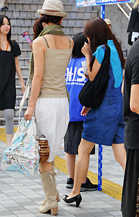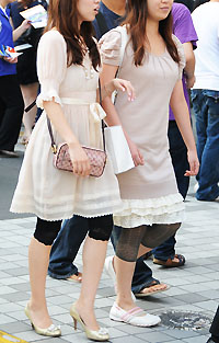 新宿では白〜ベージュのワンピースが多く見られた。ポイントには...