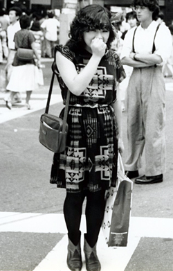 女性通行人 65.3%(2,119人) うち、スカート着用 62.0%(1,314人)男性通行人 34.7%(1,126人)
