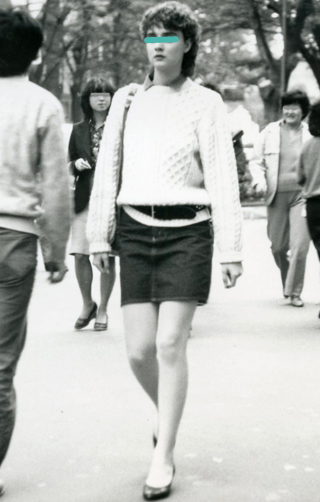 女性通行人 55.6%(2,209人) うち、スカート着用 74.2%(1,640人)男性通行人 44.4%(1,763人)