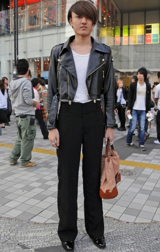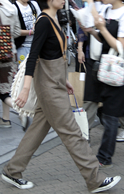 かなり股上が深いサスペンダー付きのパンツ。ギャル系にはスキニ...