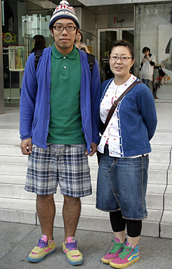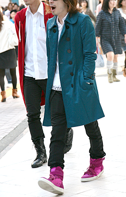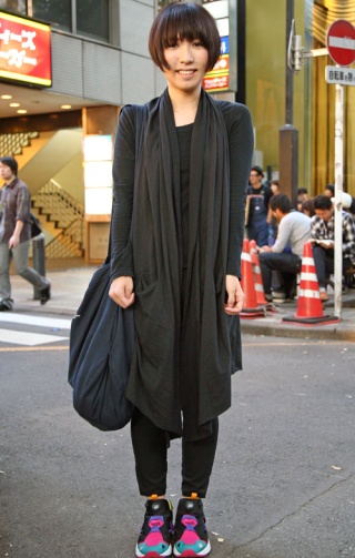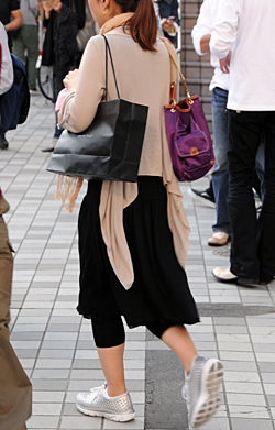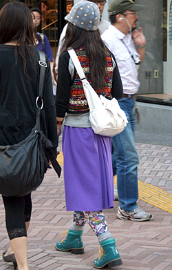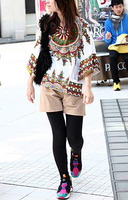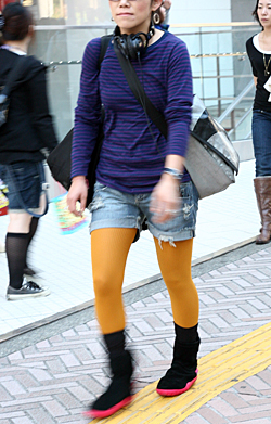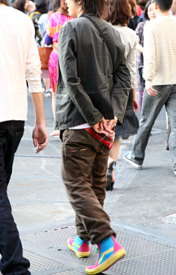 ローテクスニーカーもカラフルなタイプが多く見られた。黒タイツ...