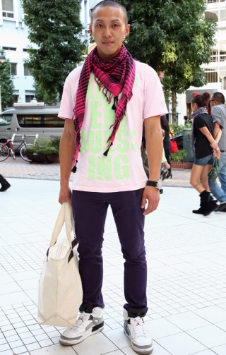 ストリート系には80年代風のポップな色使いのコーディネートが...