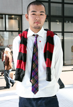 チェック、とくにマドラスチェックが好きなので、このネクタイを買いました。チェックのアイテムはたくさん持っています。顔が濃いので、チェックはあいます。シャツも持っていて、柄と無地のアイテムをあわせることが多いです。オールドスクールっぽいのが好きです。