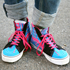 スニーカーはラフォーレのファッションショーでゴルベティ(GOLLBETTY)のジュン(G-YUN)ちゃんがはいているのを見て、買いました。変わっていて派手なところが気に入ったんです。