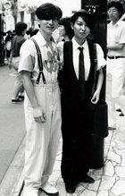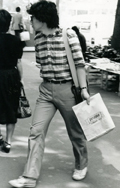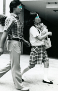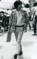 草木染めした糸で格子柄を平織りにした木綿でできたもの。トップ・ボトムの他、バッグ、靴、小物なども含む。