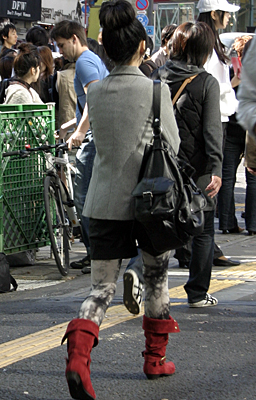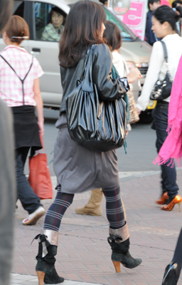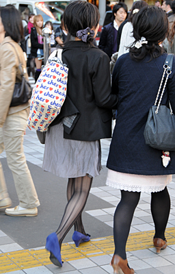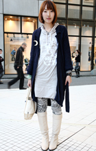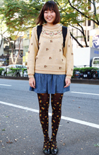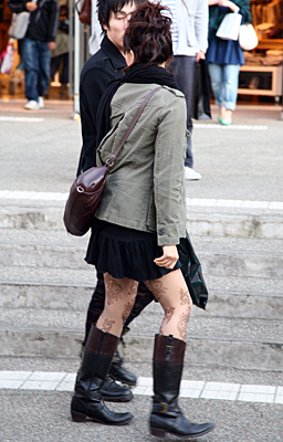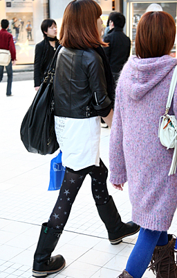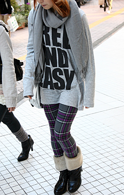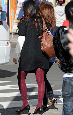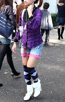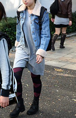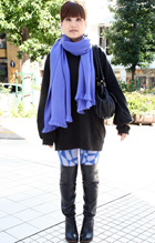 タイツの上にニーハイソックスを重ねたスタイル。レイヤード感た...