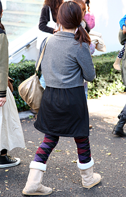 柄タイツでチェックの次に多いのがアーガイル。ジャケットやミニ...