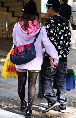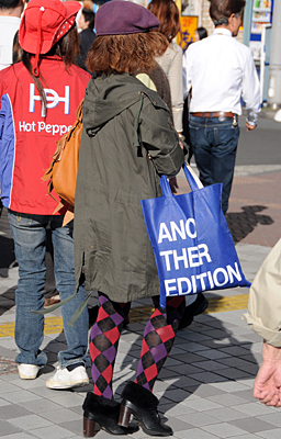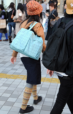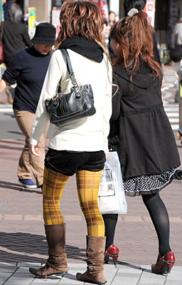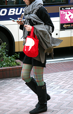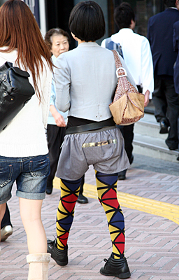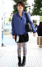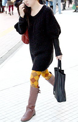 モンドリアン風のジャガードタイツ。ストリート系には厚手のニッ...