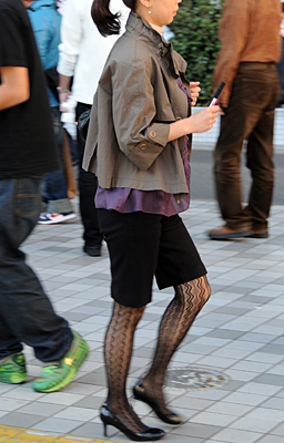 11月に入り、グレーや黒など無地の洋服が増加。柄タイツを差し...