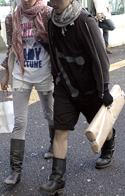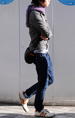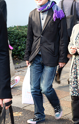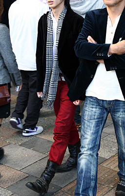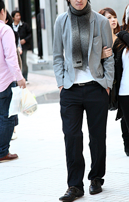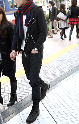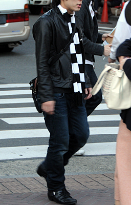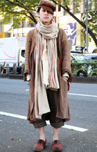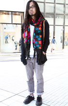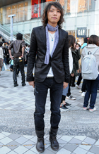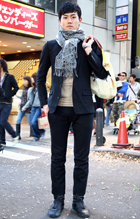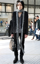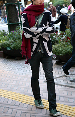 20代前半のストリートモード系の男の子にはロングマフラーが人...